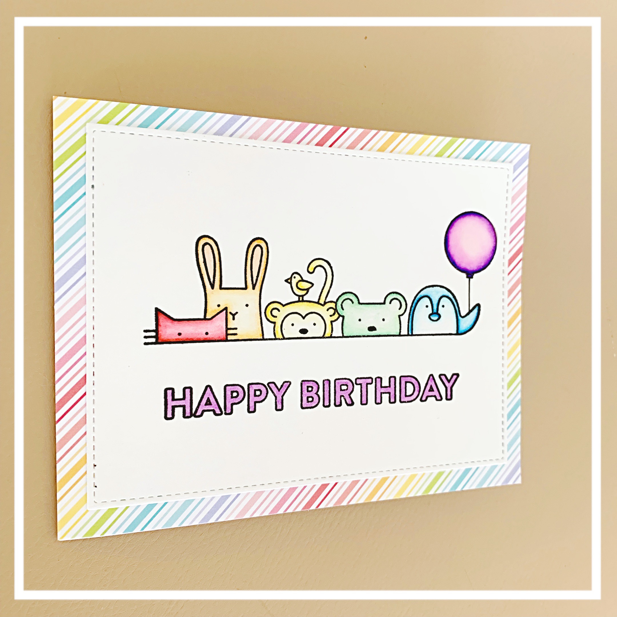 I chose a colorful paper from the Lawn Fawn – Really Rainbow Paper Pack and adhered it to a card base. Adhered the colored panel onto my base and my card was almost finished.