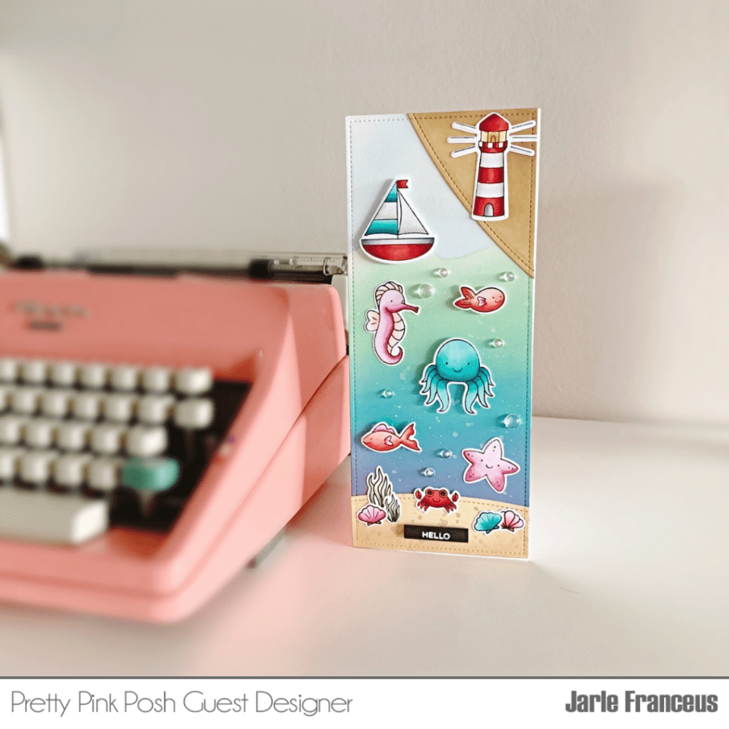 I’m here today, showing you a card I made with the Nautical stamp set and the Sea Friends set. The Nautical set went live with the May release and I already made a few cards with it.
