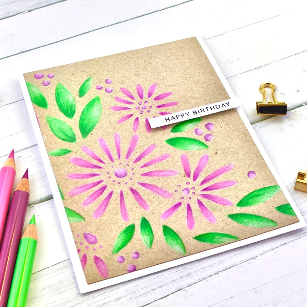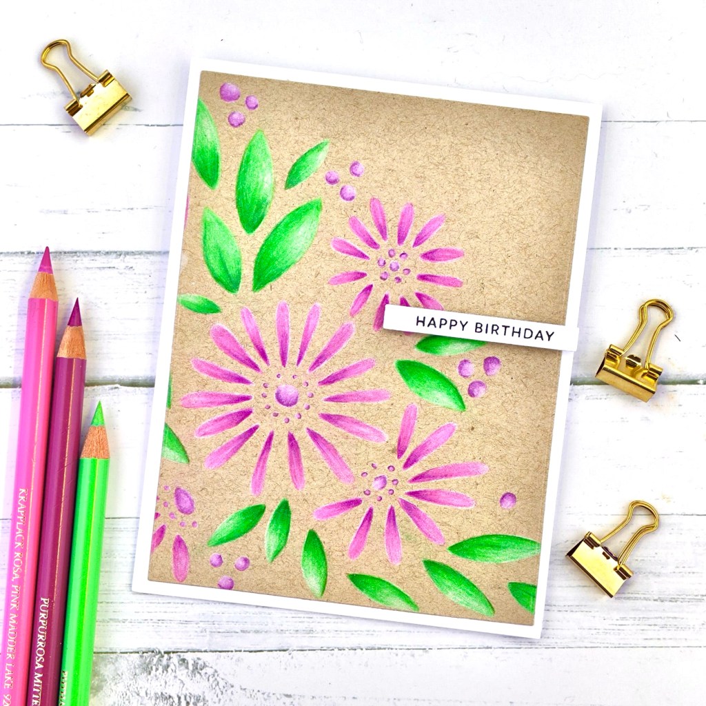 I’m back with a very clean and simple card where I focused on coloring with my Polychromos pencils. I just wanted to relax and not worry about a specific design too much.